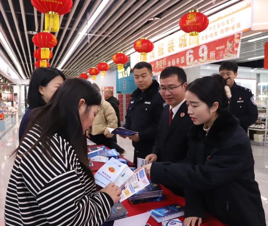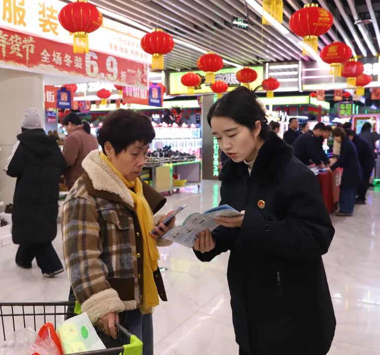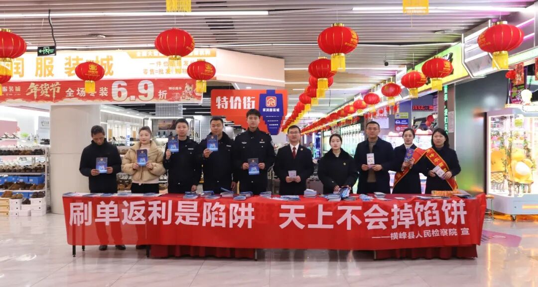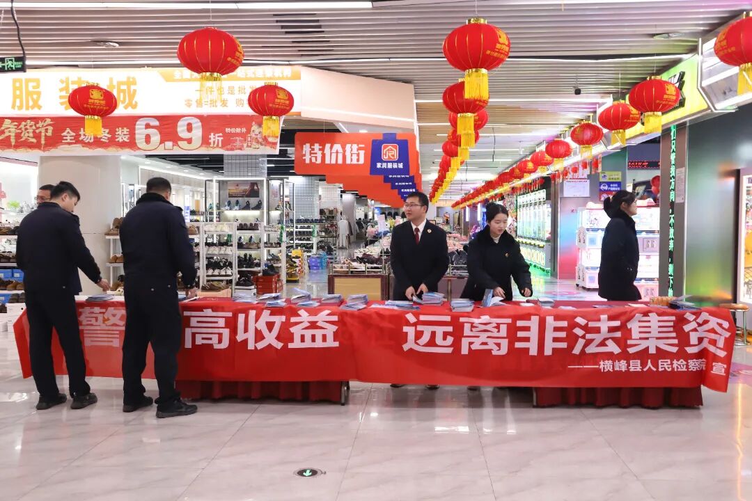 2月5日上午,横峰县人民检察院联合县公安局、农商银行及城南社区,在嘉百乐超市共同开展防范非法金融与反电信网络诈骗普法宣传活动,面对面为居民筑牢财产安全“防火墙”。
